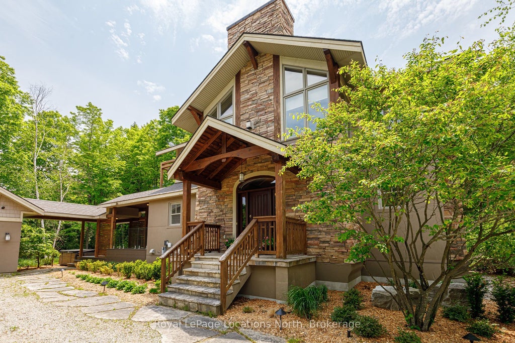 Beautiful, spacious chalet in prestigious Nipissing Ridge near Alpine & Craigleith ski clubs & Blue Mountain's year round activities inc skiing, golf, trails, shopping, dining, & more! This 3133 SF, 4 bedroom chalet sits on 1/3 acre, xeriscaped, automated sprinklers, and treed for maximum ease, enjoyment & privacy. Custom built for the current owner & completed in 2004, it continues to exude timeless quality & is ready for new owners to enjoy the excitement of all the area has to offer. The top floor offers an inviting living area w a soaring vaulted ceiling, cozy gas fireplace, & 2 pc bathroom. The open concept is perfect for entertaining, both inside, & outside on the deck w automated shade cover. A separate den for reading or work completes the top floor space. The main floor of the home offers the primary bedroom w 3 pc ensuite bath, + two guest bedrooms w a 3 pc bath to share. The basement is fully finished featuring a bright 4th bedroom & 4 pc bath including a jacuzzi tub, a family room, laundry room & small gym. Outside a full width composite deck offers covered seating, a TV, & kitchenette, w steps down to a large patio area w inviting hot tub & a lounging or conversation area. Driveway, trees and steps to deck have automated lighting. An oversized single, detached garage offers room for parking & extra gear and has a covered walkway from its side door up the deck and into the mudroom. Steps from this wonderful property are both the famous Georgian Trail for jogging, cycling, and X-Country ski in winter, and Northwinds Beach, renowned for it favourable kitesurfing winds. In winter, the Craigleith ski club services this neighbourhood with a club bus! AirBnB type rentals are not legal here nor can an STA License be obtained. Come and view this offering today! Floorplans available. Since 2022, $360,000 in improvements have been done, ask LB for details. Hydro, Gas & Water avg approx $320/mth. Buyer reps must accompany their clients to receive full pay.