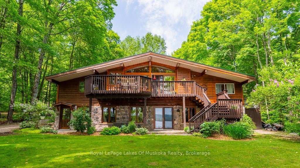 First time offered for sale! This cherished year-round waterfront home on Pickerel Lake, formerly known as 'Lasting Impressions', is ready for its next chapter. Nestled on a beautifully landscaped and private 0.8-acre lot with 100 feet of natural shoreline, this cherished retreat offers four-season comfort, tranquility, and endless recreation. Enjoy breathtaking lake views, sandy beach entry, deep water off the dock for swimming and boating, and a private snowmobile path to the lake. Mature trees, perennial gardens, and a peaceful waterfall beside a flagstone patio create a truly serene outdoor haven. You're welcomed by a striking granite stone entrance while beautiful flagstone steps lead to the lake, and front and rear decks offer multiple places to relax or entertain. Crafted with top-quality B.C. red cedar on all buildings, the main home features a warm and functional layout with 3+1 bedrooms upstairs and 2 more in the finished walkout basement. The inviting living room with lake views boasts a stunning fieldstone propane fireplace, and the stylish Cutters Edge kitchen has ample cabinetry, and a Vermont Castings propane stove in the dining area. Comfort and efficiency abound with propane radiant in-floor heating on both levels, a new heat pump with A/C, hot water on demand, drilled well, a woodstove (WETT certified), lake-drawn water system for the gardens, and a generator for backup power. Additional highlights include a massive 40' x 26' insulated/heated workshop with hydro, an oversized double garage, attached woodshed, propane BBQ hookup, invisible dog fence, and a charming cedar bunkie, ideal for guests, a studio, or a creative retreat. Plentiful parking accommodates vehicles, trailers, ATVs, snowmobiles, and more. Located on a well-maintained year-round road just 15 minutes from Hwy 11 and Burks Falls and close to OFSC trails! A rare and lovingly maintained property offering year-round lakeside living at its best -your Pickerel Lake paradise awaits!