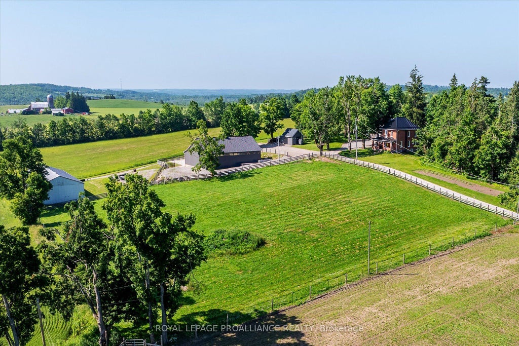 Country paradise awaits at the original Bland Farm, a one-of-a-kind property that is rarely seen on the market. This meticulously kept 95+ acre farm offers ultimate privacy and serenity among the rolling hills of Cavan. The owners purchased it 10 years ago, and since then, everything has been renewed and maintained with great care, ensuring a property that stands out for its excellent condition. The fully remodeled 2,150 sq ft century brick home features crisp, modern finishes and picturesque mile-long views from every window. A spacious attic provides potential for additional living space. This farm is equipped with a great supply of water from both the creek and a well, making it ideal for growing vegetables or establishing greenhouses. Additionally, the versatile, energy-efficient heating system enhances its appeal. The property includes four outbuildings, each with dedicated electrical panels connected to Generlink. Built in 2016, the insulated detached garage (51x29) has a finished interior and loft. The 56x46 loafing equipment barn, constructed in 2019, is set up for cow calving with four sections and two shared water bowls, supported by a well report indicating 8 GPM. The large 96x40 barn is perfect for hay and equipment storage, while the 30x16 utility building features a two-compartment chicken coop. A charming cabin in the woods includes a verandah overlooking the creek. The 40 workable acres of Otonabee Loam yielded $80k in 2024, with 103 bushels of wheat per acre, and 41-52 bushels of soybeans per acre in 2022. Nestled among fertile fields, meadows, and mature maple trees ready for tapping, Jackson Creek winds through the property, offering excellent fly fishing opportunities. Located on a quiet municipal road, this rare find is just 15 km to PRHC, 11 km north of Hwy 115, and 20 minutes to Hwy 407, ensuring easy commutes to the GTA. Nearby attractions include the Cham Shan Buddhist Temple and the recreational Kawartha Lakes region.