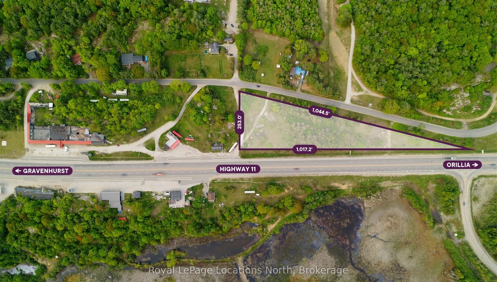 Prime Highway 11 Commercial Land Assembly in the Heart of Muskoka. This is 1 of 4 individual properties ideally being sold as part of a four-parcel assembly. The total offering provides nearly 2,000 feet of frontage with direct northbound access on Highway 11, just south of the Town of Gravenhurst, and backing onto Beaver Ridge Road. Steeped in Muskoka history, the properties include the original Muskoka Store, also known as Walter Pages.Zoned C-3 (Commercial Highway / Retail), this site is well-suited for boat showrooms, custom home builders, prefab housing, food retail, and national chains. A rare opportunity for those seeking a high-visibility highway retail location with a proven track record of strong consumer sales. The site benefits from consistent year-round traffic, excellent exposure, and a location that blends commercial potential with Muskokas distinct character. Ideally positioned to serve both local and seasonal demand, the property supports a wide range of uses in one of Canadas most iconic recreational regions.