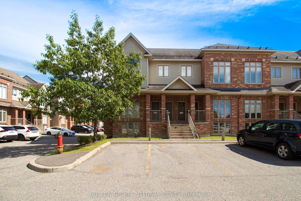 Tucked into a well-connected community, this bright end-unit condo spans two levels and offers a rare mix of character, light, and functionality. Ideal for professionals working at the Ottawa Hospital or CHEO, this home keeps you close to everyday essentials, public transit, highway access, shopping, dining, fitness centers, and green spaces. Step into the main level where oversized windows stretch two stories high, flooding the home with sunlight and creating a dramatic first impression. The upper level is thoughtfully designed for everyday living and hosting, featuring an inviting open-concept living and dining area. The modern kitchen is both stylish and practical, featuring sleek stainless steel appliances, ample storage, and a generous workspace. The private south-facing balcony offers a peaceful spot to enjoy sunshine from morning to evening, ideal for reading, relaxing, or grilling on your BBQ. Convenience is built in with a main-floor powder room and in-suite laundry. Downstairs, the standout den/family room showcases soaring ceilings and oversized windows that let natural light pour in, creating a warm and welcoming lower level. The primary bedroom features a walk-in closet and direct access to a spa-inspired bathroom with a deep soaker tub, textured tile, and contemporary finishes. A second bedroom offers flexibility for guests, a home office, or a nursery. With stylish lighting updates throughout and dedicated parking right at the front door, this condo blends comfort, convenience, and personality perfect for anyone looking for a low-maintenance lifestyle in a central location.