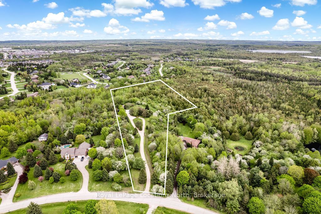 Rare FIND- Prestigious Estate Living on Nearly 10 Acres in Garafraxa Woods. Welcome to your private country retreat in the highly sought-after Garafraxa Woods estate community-just 5 minutes from the heart of Orangeville. Set on an impressive 9.23-acre lot, this custom home is nestled down a long, winding driveway and perched atop a hill, offering breathtaking views of the rolling countryside.Surrounded by mature trees and scenic trails, the property is perfect for four-wheeling, hiking, snowshoeing, and enjoying year-round outdoor adventures. The stone and cedar exterior blends beautifully with the natural surroundings, while the interior is filled with warmth and character.Inside, you'll find 3+1 bedrooms, 4 bathrooms, and an inviting open-concept design featuring cathedral ceilings, floor-to-ceiling windows, and a large 3-sided wood-burning stone fireplace as the heart of the home. Rich wood floors flow throughout, creating a cozy yet upscale feel.The spacious primary suite is located on the private third floor, complete with an ensuite bathroom, while two additional bedrooms and a 4-piece bath are conveniently located on the main level. The finished lower level offers a walk-up, a separate bedroom, bathroom, kitchenette, rec room with pool table and sauna - making it ideal for extended family, guests, or in-law potential. There's also a large pool table room and plenty of storage. An attached 2-car garage provides access to both the basement and the laundry/mudroom. Walkout decks overlook the expansive property, perfect for relaxing or entertaining. The home also benefits from a newly installed gas line.This is more than a home, it's a lifestyle. If you're looking for space, privacy, and a connection to nature without sacrificing proximity to town, this exceptional estate delivers it all. Opportunities like this in Garafraxa Woods are rare - don't miss your chance.