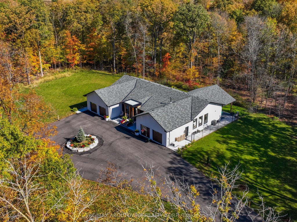 Welcome to The Forest Home! A breathtaking custom estate nestled on 6.39 acres of pristine, wooded landscape, offering the ultimate in privacy, serenity, and refined living. Designed as a forever home and built to exacting standards, this exceptional bungalow is a masterclass in modern elegance and timeless design. From the moment you arrive, the homes architectural symmetry impresseswith two double garages flanking the stately entrance for a dramatic and balanced curb appeal. Inside, approximately 3,250 sq. ft. of thoughtfully curated main floor living unfolds in an airy, open-concept layout. Inspired by Scandinavian simplicity and elevated farmhouse style, every space feels grounded in nature yet luxuriously appointed. Impeccable finishes and high-end upgrades are found throughouttoo numerous to list here, but detailed in the attached brochure. Every detail has been carefully considered: from the gourmet kitchen, walk in pantry, coffee bar, every bathroom having a different theme with imported tiles and the rustic wood stove that boasts the most amazing roaring fires! Outdoor living is equally spectacular. Enjoy alfresco dining on the covered patio, unwind in the outdoor lounge, or soak in the hot tub under the starsan entertainers dream and a private retreat in one. The expansive walk-out basement with separate entrance offers limitless potential for an in-law suite, studio, or bespoke entertaining space. The long driveway accommodates guests with ease, while the brand-new 40 ft well and septic system provide long-term peace of mind. Siding onto the 40 Mile Creek, this estate feels worlds awayyet is just 6 minutes from charming downtown Grimsby and 30 minutes from the renowned wineries, boutiques, and fine dining of Niagara-on-the-Lake and Niagara Falls. With easy access to Hamilton and Burlington, this location perfectly balances seclusion and convenience.