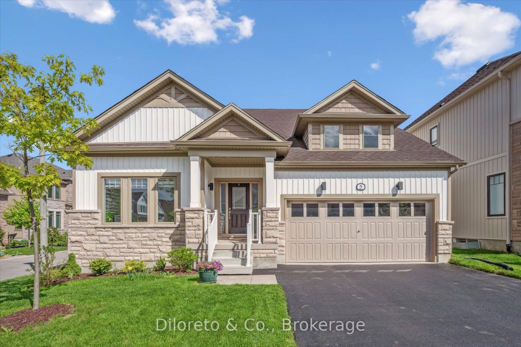 Welcome to this stunning Bungaloft in prestigious White Cedar Estates. Thoughtfully designed, this 3 bedroom home can be seamlessly converted into a 4 or even 5 bedroom home, with no sacrifice to basement space. (Upstairs is a very spacious family room which, if desired, can be converted to an extra 1 or 2 bedrooms.) Enjoy oversized windows and engineered hardwood flooring throughout. The open-concept main floor features 9' ceilings, a great room with an elegant electric fireplace, a dining space overlooking the garden, and a stylish kitchen equipped with stainless steel appliances, a large island, and a walk-in pantry. The main floor hosts the spacious primary suite complete with a walk-in closet and a luxurious 5-pc ensuite featuring double sinks, a soaker tub, and a separate shower. A second main floor bedroom with a large closet provides the perfect space for guests, family, or a home office. A full 4-pc bath and laundry room complete this level. Upstairs, you'll find a large, light-filled loft space currently configured as a family room, along with a third bedroom, 4-pc bathroom, and a walk-in linen closet. This loft can be converted into one or two additional bedrooms. Floor plans for this option are already in place, allowing buyers the flexibility to customize the space to their needs. The spacious basement offers an additional 1328 sq ft of unspoiled living space, large windows, and a bathroom rough-in. Extra highlights include premium zebra blinds with remote controls, an air exchange system and a built-in dehumidifier. The professionally landscaped backyard retreat including a spacious deck, pergola, cedar privacy screen and flower boxes and lush gardens. Tucked away on a quiet court with low-traffic street, this home is just minutes from groceries, restaurants, schools, scenic trails, and only 5 minutes from the University of Guelph. Public transit is also within easy walking distance, making this an unbeatable location for convenience and lifestyle.