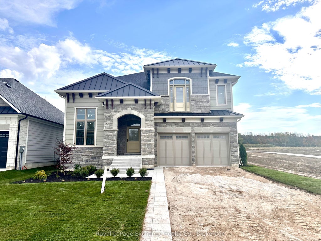 Welcome to the "Avonlea," an exquisite 4-bedroom home currently under construction, waiting for it's new owner to choose final finishes. Nestled in Kincardine's desirable Seashore Community, this residence faces west, providing unobstructed breathtaking views of Lake Huron sunsets, which you can savor from your inviting portico. Spanning 3,005 sq. ft., this remarkable home by Mariposa Homes perfectly blends modern living with elegance. Its stunning exterior features tasteful stone, James Hardie siding and corbel detailing, while the interior boasts an open-concept layout that seamlessly connects the living, dining, and beautifully crafted kitchen with an island, walk-in pantry and chef's desk. The main floor is flooded with natural light thanks to an abundance of windows and doors, and a cozy fireplace enhances the living area. Entertain in style under the loggia off the breakfast/kitchen, seamlessly extending your living space. Enjoy the luxury of hardwood flooring on both the main and upper levels, complemented by 9-foot ceilings and 8-foot doors throughout. The front foyer leads to a spacious office/den with soaring ceilings and bright, west facing windows. The main floor also features a convenient 2-piece bath off the foyer and a mudroom that leads directly from the two-car garage. Retreat to the primary bedroom on the second level, which offers a spacious walk-in closet and a lavish 5-piece ensuite complete with a soaker tub and shower. The second bedroom includes its own 3-piece bathroom, while the third and fourth bedrooms share access to a 5-piece bath. As an added bonus, the fully finished lower level will provide a spacious family room and another bathroom. This stunning home fronts onto the greenspace, park and scenic walking trails, making it an ideal location for outdoor enthusiasts. Dont miss your chance to own this elegant, fully finished new home and schedule a viewing today!