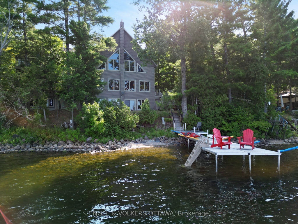 Welcome to 146 Beck Shore Road, a rare and exceptional waterfront gem nestled on the serene shores of Mississippi Lake, just minutes from historic downtown Perth. This beautifully crafted 2-storey home offers the perfect blend of lakeside tranquility and modern comfort, making it an ideal year-round residence, weekend retreat, or investment opportunity. Step inside to discover a thoughtfully designed layout with panoramic lake views from nearly every room. The open-concept main floor features a sun-filled living room with vaulted ceilings, a cozy gas fireplace, and rich hardwood floors. The gourmet kitchen is equipped with custom cabinetry, stainless steel appliances, and a spacious island perfect for entertaining family and friends. The main floor also includes a spacious bedroom and bathroom for your guests. Upstairs, a family room loft, 2 very generously sized bedrooms, including a luxurious primary suite with a private balcony overlooking the water, an additional room to use as a private office and a large ensuite. A second bedroom offers a vaulted ceiling, beautiful gas fireplace and a walk in closet with convenient laundry facilities. The second floor also has a luxurious 4 piece bathroom. Lower level includes a walk out, large rec room with a wood burning stove, an additional bedroom and a large storage room with a separate entrance. Step outside to enjoy 145 feet of pristine waterfront, a private dock for boating and swimming, and a beautifully landscaped private lot with mature trees and gardens. Whether you're hosting summer BBQs, relaxing with a book on the deck, or taking in the sunsets from the dock, this is lakeside living at its best. Additional features include a double garage, a generator, efficient heating/cooling systems, and high-speed internet. Located on a quiet country road with year-round access, and just 1 hour from Ottawa.Don't miss your chance to own a piece of paradise at 146 Beck Shore Rd where every day feels like a vacation.