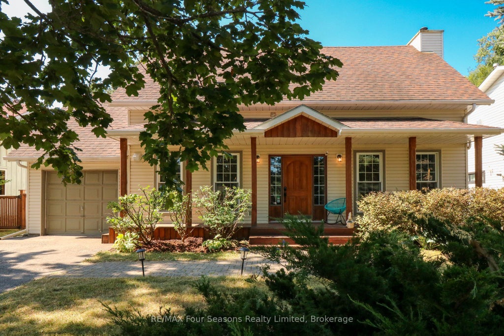 Welcome to this beautifully maintained 3-bedroom, 2.5-bath chalet located on a quiet street in one of Blue Mountains most sought-after neighbourhoods. Offering a perfect blend of rustic charm and modern convenience, this turn-key home is within walking distance to the ski lifts, Blue Mountain Village, Monterra golf course, nearby Craigleith Ski Club, and a quick bike ride or drive to beautiful Northwinds Beach on the shores of Georgian Bay! Step inside and fall in love with the soaring wood beam ceilings, wood plank floors, and Spanish tile accents that give this home its warm, mountain-lodge feel. The spacious family room with wood stove is ideal for cozy evenings, while the open-concept kitchen and dining area seamlessly connects to a covered patio featuring a wood-burning pizza oven, perfect for entertaining after a day on the slopes. The main floor also features an incredible ski tuning/boot room to store and work on all your recreational gear. Upstairs, the oversized primary suite includes a 3-piece ensuite, and two additional bedrooms share a well-appointed 4-piece bath with skylight. Also second floor hallway closet features convenient washer and dryer for easy access. There's even a separate loft hangout space above the games room ideal for teens or guests. Outside, enjoy your private backyard oasis with views of the ski hills and Niagara Escarpment, a hot tub, outdoor cedar barrel sauna with Harvia electric heater, wood fired pizza oven, fire pit, playground equipment for the kids and a large storage shed set-up as an outdoor bar making this an unbeatable spot for après-ski relaxation or summer BBQs. The garage has been smartly converted into a ski/boot room and games area, complete with a boot drying station and extra fridge. Call now and to schedule your private viewing!