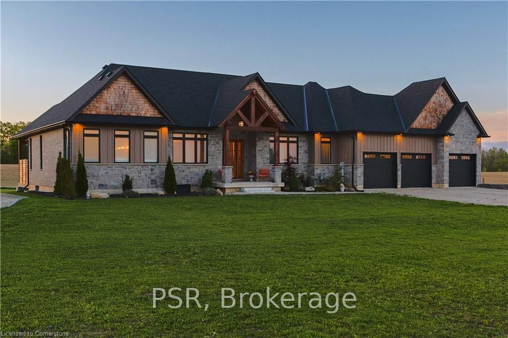 Now Offered at an Attractive New Price! Don't miss this rare opportunity to own the dream home you've been waiting for now available at an exceptional value. This stunning home offers over 3,000 sq. ft. of beautifully designed living space, nestled on a sprawling lot that backs onto peaceful farmland perfect for taking in breathtaking sunsets. Step inside to an abundance of natural light, elegant white oak flooring, and an open, inviting layout. The kitchen is a chefs dream, featuring exquisite quartz countertops, stylish light fixtures, stainless steel appliances, and a full butlers pantry complete with its own sink, fridge, and ample storage. The family room impresses with soaring cathedral ceilings, a gorgeous fireplace, and a custom mantle, creating the perfect space to gather and unwind. The luxurious primary suite offers a spacious ensuite closet and a spa-like 5-piece bathroom with a relaxing soaker tub. Three additional generously sized bedrooms, each with their own ensuite bathroom, complete the main level, along with a convenient main-floor laundry room. Downstairs, the basement features an additional room and is already drywalled with 9 ft ceilings and an insulated workshop ready for your personal finishing touches. Outside, the expansive backyard boasts a covered porch, ideal for entertaining or simply soaking in the tranquillity of country living. The home also includes an oversized three-car garage and an additional 500 sq. ft. workshop, providing ample space for storage, hobbies, or projects. This home truly has it all- space, style, and serenity. Now offered at a new, irresistible price this is your chance to make it yours!