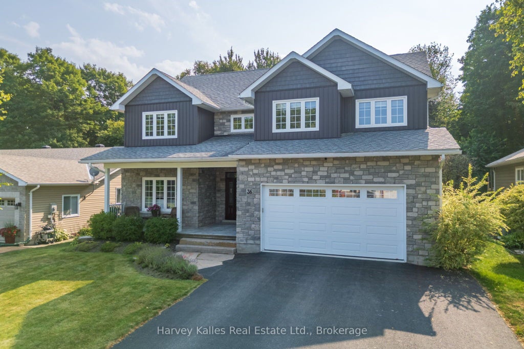This impressive 5+ bed, 4-bath custom residence is ideally suited for large, growing or multigenerational families seeking space, comfort, and a vibrant community. Located in a newer yet well-established neighbourhood, this 5000+sf home offers bright, open-concept main floor living with a walk out to an expansive deck (approx 48'x12') and landscaped yard backing onto green space. Designed for family gatherings and meal preparation, the chef inspired kitchen features a large, 9' island, granite countertops, built-in appliances and 2 generous pantries; an appliance pantry with outlets for all of your kitchen items plus storage pantry. The living and dining areas offer inviting spaces to relax, with a cozy gas fireplace in the living room. On the main level, the primary bedroom includes a spacious walk-in closet, a luxurious ensuite with a water closet and double shower, plus direct access to a large rear deck complete with a hot tub. Also on the main floor is an additional bedroom/office, laundry room, and access to the attached double garage. Upstairs, enjoy a sitting room, 3+ generously sized bedrooms each with large closets, and one offering ensuite access. The lower level is an entertainers dream, featuring 9' ceilings, theatre room, a large recreation area with a pool table and shuffleboard, an office or music room, and a dedicated gym with durable rubber flooring. A 3-piece bathroom and abundant storage complete this versatile space. Outside, the well-maintained grounds complement the family-friendly neighbourhood, which offers sidewalks, streetlights, a park, and the added advantage of being on a quiet, no-through street with reduced traffic. The home is just minutes from a school, the hospital, and a short drive to downtown Huntsville. Enjoy the convenience of natural gas and municipal water and sewer services. This custom built home was designed to meet the demands of an active family lifestyle, providing a perfect space for everyone to grow and thrive.