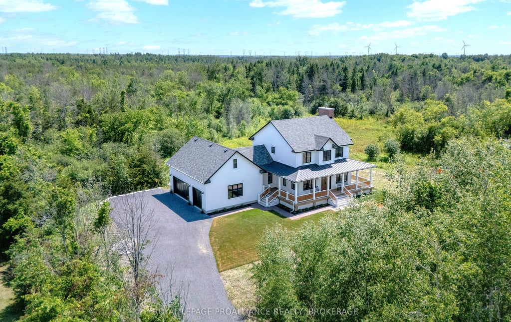 An opportunity to own one of Kingston Home Builders Associations award winning homes. Step inside this stunning new custom home by Concord Homes, one of Kingston's finest builders. A traditional farmhouse where timeless charm meets modern craftsmanship, this home was designed to feel as though its always belonged here. From the classic peaked roof-lines to the warm hemlock floors and ship-lap walls, every detail invites comfort and style. Set on 2 acres of peaceful countryside, you'll love relaxing on the wide wraparound front porch or the back covered porch with views of nature all around. The main floor boasts 10-foot ceilings and a cozy great room centered around a reclaimed brick wood fireplace with a solid maple mantle. At the heart of the home is a beautifully designed kitchen, complete with a spacious center island, custom cabinetry, and a hidden walk-in pantry that keeps everything organized and out of sight. Upstairs, the second floor offers a convenient laundry room, four bedrooms, and a four-piece bathroom. The primary suite is a retreat with cathedral ceilings, skylights, and a luxurious ensuite. The finished walk-up lower-level features 9-foot ceilings, an additional bedroom, a huge media room, a wet bar, and a full bathroom with a steam shower and wet/dry sauna with red light therapy - creating the perfect home wellness retreat. For added convenience and space, the oversized three-car attached garage offers plenty of room for vehicles, hobbies, or extra storage. Located on a quiet country road just 10 min from all west end amenities.