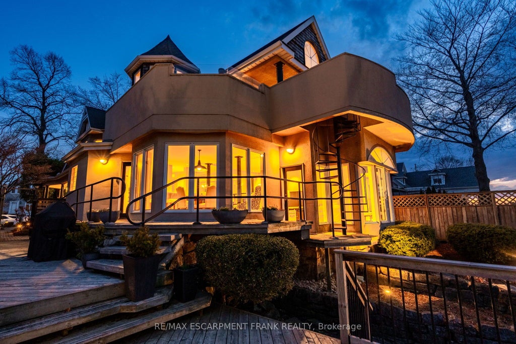 THIS IS HOME! Welcome to 91 Mountain Park Avenue - a rare, generational family home that blends timeless character with modern design and million-dollar views. Natural light pours in through floor-to-ceiling windows, highlighting rich hardwood floors throughout the main level. The spacious kitchen offers ample counter space and modern amenities, ideal for entertaining family and friends. An open-concept layout flows beautifully with space for a full dining area, breakfast nook, and a sunken living room - a cozy gathering spot for all. Just off the foyer, a versatile room overlooking the front porch is perfect for a home office or reading lounge. The large laundry/mudroom with garage access adds everyday convenience, while a 2-piece powder room and stained-glass accents add charm and character. Upstairs, two bright bedrooms offer generous closets and natural light. A renovated 4-piece bath leads to the primary suite - featuring vaulted ceilings, a wood-burning fireplace, walk-in closet, 5-piece ensuite, and nearly 500 sq. ft. balcony with sweeping views of the city, and beyond. The third floor includes your fourth bedroom with skylights and a turret-style sitting area, a 3-piece bath, and a quiet office space. Outside, enjoy a double garage, landscaped walkways, multi-tiered gardens, four-tier deck, and a spiral staircase connecting outdoor spaces. This home is a private city-view oasis on the Niagara Escarpment. Luxury Certified.