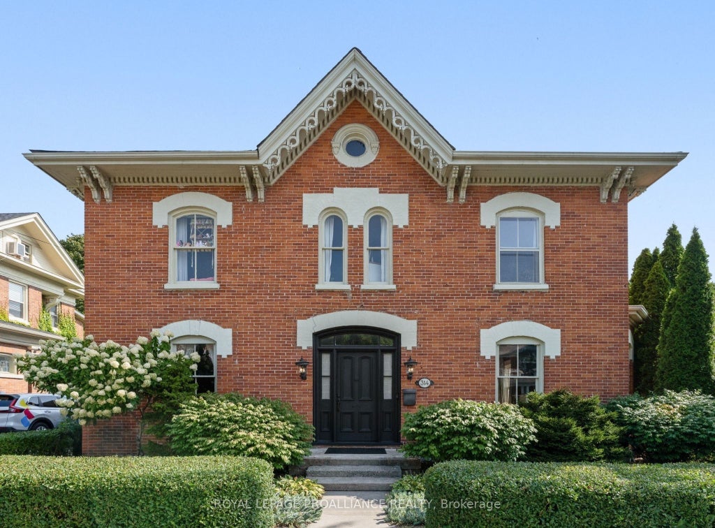 Welcome to 314 George St, a distinguished Italianate brick home built in 1876 and filled with both character and modern comfort. Solidified in history as The Fletcher House, this two-storey, five bedroom, three bath home seamlessly blends character, comfort, and practicality in the heart of Cobourg. Inside, you'll find hardwood flooring throughout and preserved original details that add timeless charm. The homes original fireplaces remain as striking architectural features, maintaining the historical character while no longer in use. Thoughtful updates include quartz counters, closet solutions, a whole-home carbon filter, and convenient upper-level laundry. The home is carpet free, with a furnace updated approximately ten years ago and air conditioning added eight years ago. Generous living spaces provide room for both everyday life and entertaining, offering areas to gather as well as quiet corners to work from home or simply relax. A full, unfinished basement offers excellent storage and potential for future use. Outdoors, the fully fenced yard and large patio create a private oasis, perfect for hosting or enjoying peaceful downtime. Sod was replaced in the backyard in 2019, enhancing the outdoor living space. Two options for driveway parking exist off of both George Street and Buck Street. The home enjoys a prime location in the downtown core, a skip to the beach and marina, train station, schools, and restaurants. With its unique balance of flow and grandeur, along with its feeling of calm and offerings of privacy, this exemplary property is one not to be missed.