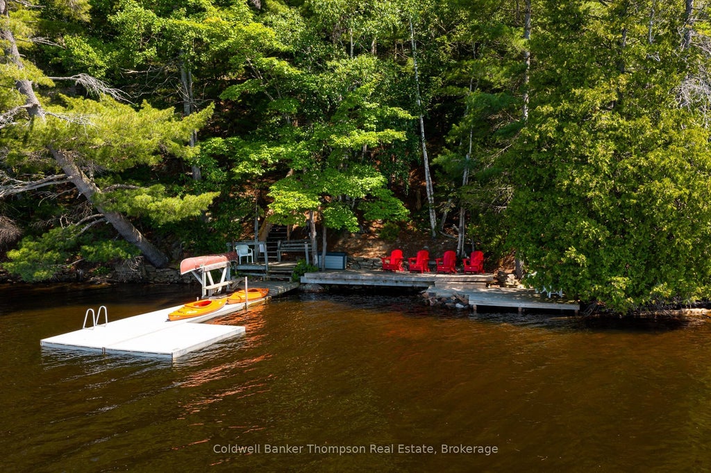 Nestled at 148 Golden Pheasant, this stunning turnkey property offers unparalleled access to the serene waters of Fairy Lake, with over 40 miles of boating through Huntsville's picturesque lake system. Enjoying all municipal services, including town water & sewer and natural gas. This home has undergone extensive renovations in the last 6 years. Highlights include a new kitchen, updated windows, and luxurious bamboo flooring throughout. Noteworthy upgrades by the current owners, which amount to over $50,000, include glass railings, a new staircase, & updates to the stairs leading to the water, as well as the lower level suites complete renovation. The main floor boasts a sophisticated home office/library, a cozy den with a decorative wood fireplace, and a sunlit living room with soaring ceilings and a natural gas fireplace. Step outside onto extensive decking from both the living and dining areas, perfect for seamless indoor-outdoor living. The chef's kitchen, complete with stainless steel appliances and eco-friendly countertops made from a resin walnut combination, flows into the dining space. Additionally, the main floor features a convenient powder room and laundry room. Upstairs, discover a luxurious primary suite with a private balcony, walk through closet, & 3 piece en-suite, along with two more spacious bedrooms and a 4 piece guest washroom. The lower level offers a complete and private bedroom suite with its own outside entry, along with another 3 piece washroom and ample storage space. Enjoy coveted southwest exposure on the waterfront, boasting long lake views, shallow entry, and a private dock. Elevated positioning affords exceptional privacy amidst lush foliage, creating a tranquil woodland retreat. With easy access to Huntsville's amenities by boat or car, along with proximity to golf and skiing, this remarkable year-round home or cottage epitomizes the best of both worlds.