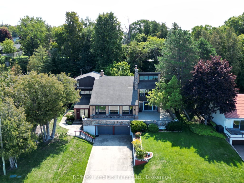 Prestigious Lakeside Living in Kincardine! Executive 5-Bedroom Home nestled along one of the most exclusive stretches of Lakeside properties in Kincardine, this stunning executive-style home offers over 5,000 sq ft of luxurious living space designed for comfort, relaxation, and entertaining.Boasting 5 spacious bedrooms and 4 well-appointed bathrooms, the home features a chefs kitchen complete with built-in appliances and a large centre island perfect for family meals or entertaining guests. The grand dining room opens directly onto a lake-facing patio, creating an effortless flow between indoor and outdoor living. Enjoy breathtaking lake views from the expansive living room, framed by oversized windows that flood the space with natural light. The lower level includes a dedicated spa, sauna, and fitness room, offering a private retreat within your own home.Step outside to a beautiful, private backyard oasis filled with mature perennial gardens, ideal for quiet reflection or vibrant gatherings.This is a rare opportunity to own a lakefront gem in one of Kincardines most sought-after neighborhoods.
