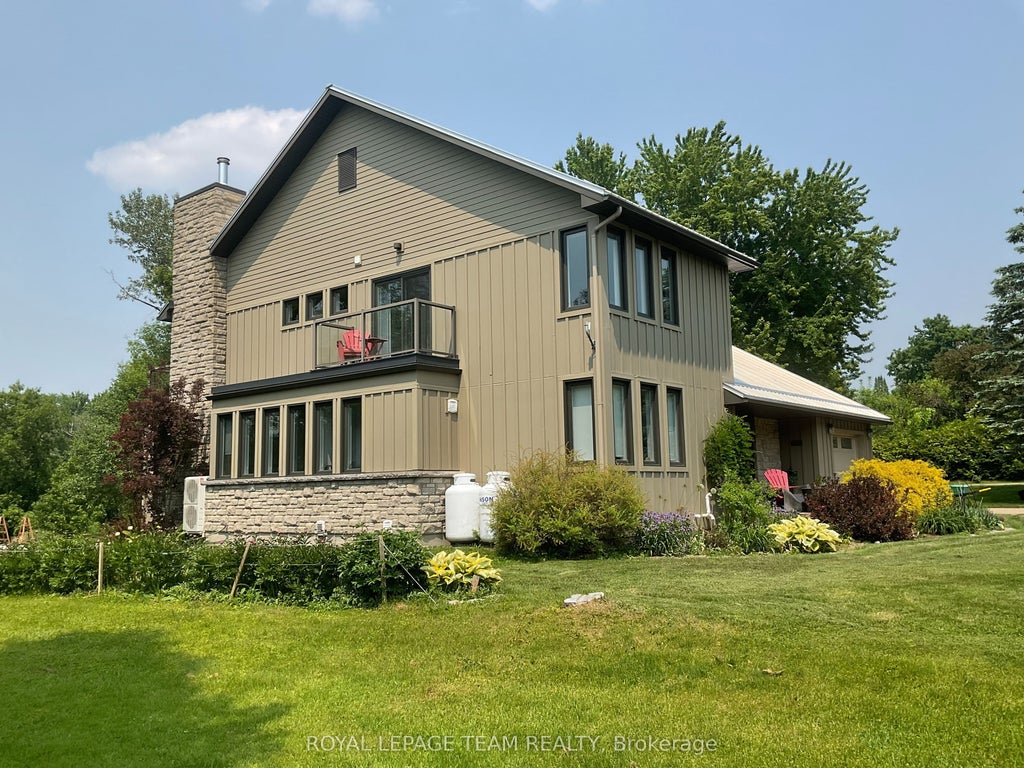 Welcome to this stunning 2016 custom-built Lockwood Brothers home, perfectly set on a beautifully landscaped lot along the banks of the Rideau River in historic Burritts Rapids. Elevated from the riverbank, the grounds are a living canvas, with carefully curated wildflower and herb gardens that evolve through the seasons. An interlock driveway leads to the attached single-car garage, with plenty of outdoor lighting enhancing both curb appeal and convenience. Inside, thoughtful architectural details maximize natural light and frame breathtaking views,seamlessly blending the outdoors with every room.Ceramic and hardwood floors run throughout (no carpet), offering a stylish and pet-friendly finish. At the heart of the home lies a truly unique feature: an endless pool,designed for year-round fitness, relaxation, and wellness. The main level includes a bright guest bedroom and full bath, along with a cozy living room featuring a wood-burning fireplace and sweeping river views. The gourmet kitchen is both tucked away and central to the home's flow, ideal for entertaining while maintaining an intimate atmosphere. Upstairs, discover three bedrooms, two of which boast private balconies that feel like personal retreats, offering peaceful escapes with views of the river and gardens. Outdoors,a private dock makes launching watercraft effortless, with excellent opportunities for canoeing and kayaking. The naturalized shoreline provides a haven for wildlife, from a variety of birds to a family of playful otters. For entertaining,the pool room opens to a spacious deck, while a sunroom tucked behind the garden/storage garage offers yet another space to unwind. Fenced-in area to keep your pets safe and secure. Bright,spacious,and intentionally designed, this home balances open-concept living with secluded nooks, creating a welcoming retreat that feels both expansive and intimate. New heat pump (2024) for economical heating and cooling, Generac whole-home generator for peace of mind.