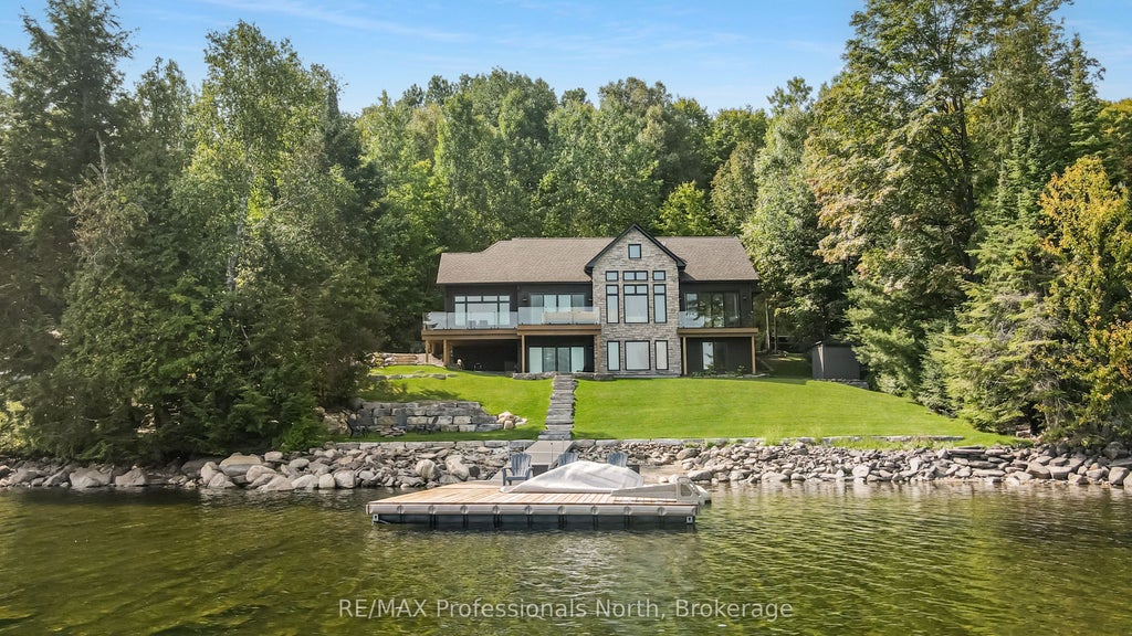Step inside this brand-new, 4600+ sq ft lakeside retreat on beautiful Haliburton Lake. This isn't just a cottage; it's a magazine-worthy masterpiece with premium finishes at every turn.The main level features a soaring cathedral great room with a propane fireplace and a composite deck with glass railing that overlooks the expansive, clear lake. Walking through the door the view will take your breath away, as will the kitchen - boasting high-end appliances and extensive custom cabinetry that extends into a practical mudroom with laundry. In addition to the open concept main areas, you'll find four spacious bedrooms and three elegant bathrooms, plus an office and a fantastic sunroom for those lazy afternoons.The walkout basement is ready for action with a home gym and a stylish bar, perfect for entertaining. The property sits on a level landscaped lot with prime shoreline, offering direct access to the clean, clear waters of one of the area's largest lakes, and it's just minutes from a convenient marina and Fort Irwin.With in-floor heating throughout the lower level and tiled areas, this home offers comfort and luxury in every season. This is the perfect blend of modern design and cottage country living.