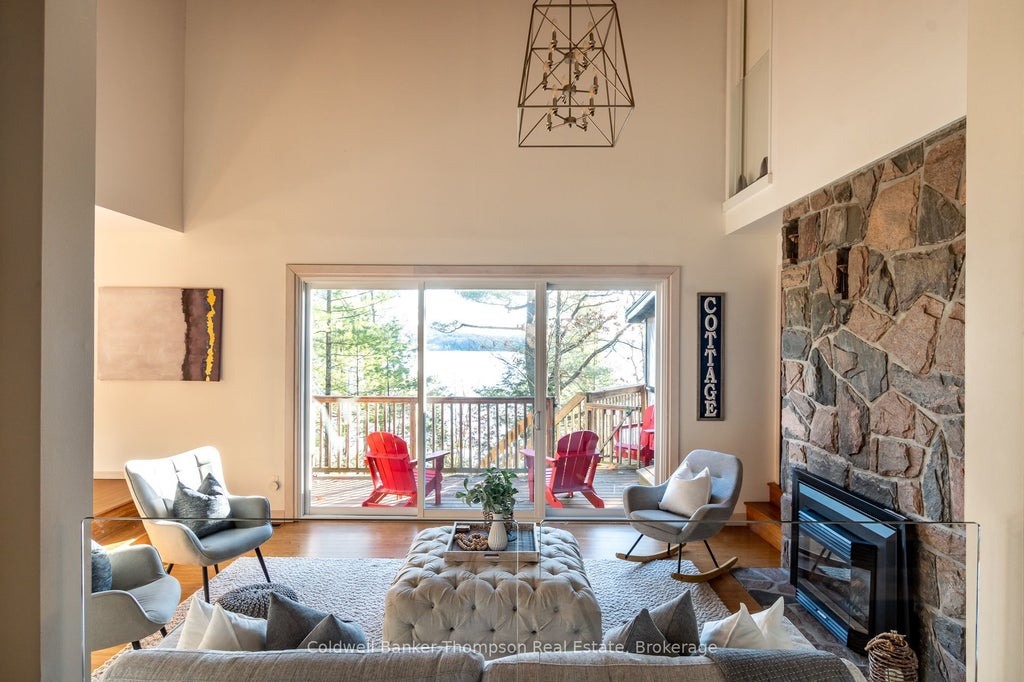Available for a 6-month furnished lease from November to May, 148 Golden Pheasant presents a rare chance to immerse yourself in the beauty of Fairy Lake. With more than 40 miles of boating through Huntsvilles picturesque lake system at your doorstep, this fully furnished home blends the ease of municipal water, sewer, and natural gas with the comfort of a stylish retreat. Extensively renovated in the past six years, it highlights a new kitchen, updated windows, and warm bamboo flooring. More than $50,000 in thoughtful upgrades include sleek glass railings, a striking new staircase, improved stairs to the water, and a full renovation of the lower level suite, creating an inviting space for guests.The main floor features a refined home office/library, a cozy den with decorative wood fireplace, and a sun-filled living room with soaring ceilings anchored by a natural gas fireplace. Both the living and dining areas open onto expansive decking for seamless indoor-outdoor living. The chefs kitchen, complete with stainless steel appliances, corner prep areas, and eco-friendly resin-walnut countertops, flows easily into the dining space. A convenient powder room and full laundry complete this level for day-to-day ease. Upstairs, retreat to the primary suite with its private balcony, walk-through closet, and 3-piece ensuite, joined by two additional bedrooms and a well-appointed 4-piece guest bath.The lower level offers a self-contained bedroom suite with its own outside entry, another 3-piece washroom, and ample storage. Southwest exposure along the shoreline affords long lake views, shallow entry, and a private dock ideal for relaxing or launching watercraft. Elevated among mature trees for privacy yet minutes by boat or car to Huntsvilles shops, dining, golf, and nearby ski hills, this beautifully furnished rental delivers a rare opportunity to enjoy the areas four-season lifestyle in comfort, style, and convenience.