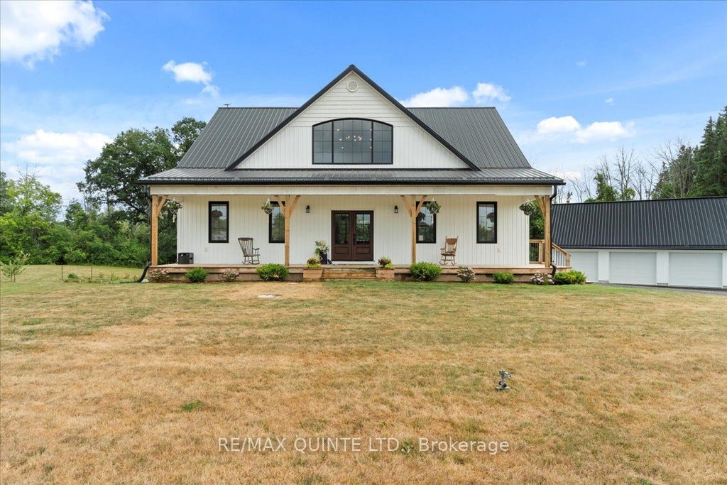 This custom-built 2019 home blends modern functionality with timeless farmhouse charm. Designed for multi-generational living, entertaining, and family life, it offers 3 fully finished levels, soaring ceilings, and bright open-concept spaces throughout. Enter under the covered porch, the main-floor primary suite is a luxurious retreat with a clawfoot tub, glass and tile walk-in shower, double vanities, and a walk-in closet. Upstairs, two generously sized bedrooms are connected to whimsical secret hideaways and each enjoys access to its own bathroom one with a private ensuite and the other with a semi-ensuite that also serves the loft/music space and games room. At the heart of the home is a stunning chef-inspired kitchen featuring floor-to-ceiling cabinetry, quartz countertops, a gas range, double wall ovens, an island with four stools, and a walkout covered balcony perfect for morning coffee barbeques, or evening relaxation. The adjacent great room is anchored by a gas fireplace flanked by bookshelves and filled with natural light from oversized windows. The fully finished walk-out basement includes a beautifully appointed in-law suite with three bedrooms, a full kitchen with island hello baking space! ,An open dining area, two electric fireplaces, in-floor radiant heating, private laundry, and two full bathrooms including a private ensuite with double sinks in the lower-level primary bedroom with walk in closet. Additional features include the 3 fireplaces (one gas and two electric), 6 bedrooms plus multiple bonus spaces, six bathrooms, two laundry spaces, mudroom with storage, lower level with in-floor heating. The detached three-car garage 30x40 foot garage with a 14x26ft loft, and 13x40ft of space with high ceiling (perfect for a car lift).. A spacious backyard completes the picture. Ideally located just minutes from town, this peaceful property offers flexibility and comfort for blended families, long-term guests, or anyone seeking space and style.