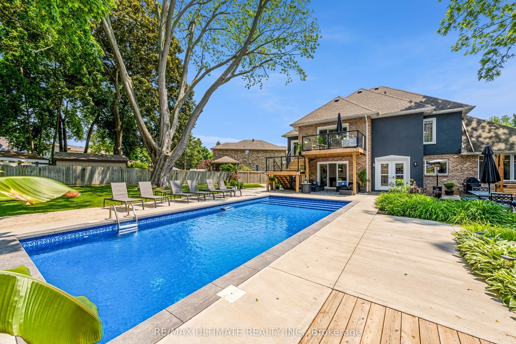 Architectural Elegance Meets Everyday Luxury in Prestigious Fonthill. When you walk through the door, your eyes are immediately drawn to a stunning floor-to-ceiling stone feature wall and a striking open-riser staircase of glass and wood, an architectural statement that sets the tone for the entire home. Beyond this, soaring cathedral ceilings and dramatic floor-to-ceiling windows fill the great room with natural light, creating a warm yet awe-inspiring welcome. Set on an expansive pie-shaped lot in one of Fonthill's most sought-after neighbourhoods, this 3,000 sq. ft. custom-built contemporary home blends modern design with everyday functionality. The open layout flows effortlessly into a formal dining area with vaulted ceilings and a chefs kitchen boasting abundant counter and cabinet space, a large breakfast island, and views into the spacious family room. Upstairs, the primary suite is a true retreat with a spa-like 5-piece ensuite, walk-in closet, and private balcony, complete with its own staircase to the pool. Two additional bedrooms offer generous closets and unique accent windows that add character and light. The finished basement expands your living space with a rec room, office, extra bedroom, and ample storage. Step outside to a backyard paradise designed for unforgettable moments: a saltwater pool, bubbling hot tub, fully equipped outdoor kitchen and bar, a gazebo, new deck, and beautifully landscaped grounds with concrete walkways and elegant planters. Whether you're drawn to Fonthill for its charm, community spirit, or proximity to Niagara's finest amenities, this home delivers the perfect balance of comfort, elegance, and lifestyle in a location you'll be proud to call your own.