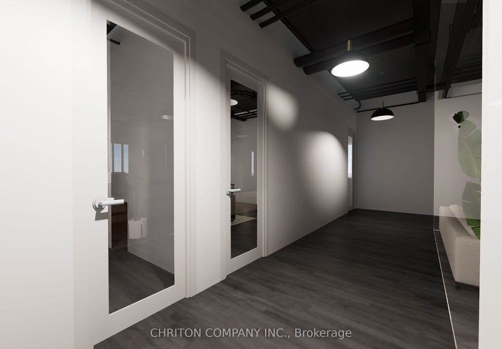 These are a total of 10 offices, of which 5 are in the front, each rented individual, there is a staff room with a coffee maker, fridge, cupboards and chairs. A boardroom which can be used by self booking it (it is included in the price), three washrooms, of which one is for Handicaps, two others each with two sinks. The area is cleaned regularly to portrait a professional look. The pictures are artist concept, the furniture is not included. Each tenant will be responsible to furnish and keep their office in a professional way. Devoted Parking space included.