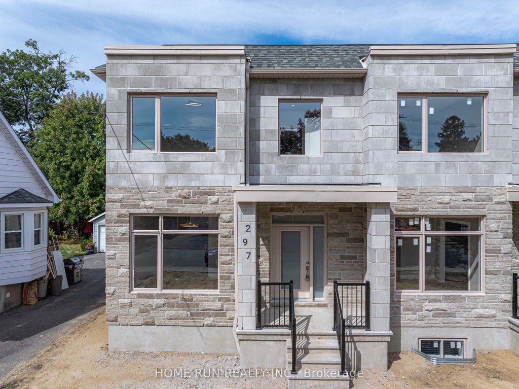 297 Dovercourt Avenue, Westboro - Brand New Semi-Detached with SDU. Experience modern living in the heart of Westboro with this newly constructed semi-detached home offering over 2,700 square feet of beautifully finished space. The main and second floors feature 9-foot ceilings, three spacious bedrooms and three bathrooms, including a master bedroom with a walk-in closet and a luxury ensuite bathroom. The open-concept main level is filled with natural light thanks to the skylight. It showcases a stylish living area and a chef-inspired kitchen with an oversized island and high-end cabinetry that provides exceptional storage and function. The fully finished lower level offers a registered Secondary Dwelling Unit (SDU) with a separate private entrance, complete with its own bathroom, kitchenette, and living area- perfect for generating rental income or accommodating multi-generational living needs. The private backyard provides just the right amount of space for outdoor relaxation, entertaining, or gardening. Located steps from Westboro's vibrant shops, cafés, top-rated schools, parks, and transit, this home offers the perfect blend of luxury, functionality, and urban convenience. This home is protected by the full Tarion Warranty. The two exterior images include virtual landscaping for illustration purposes only.