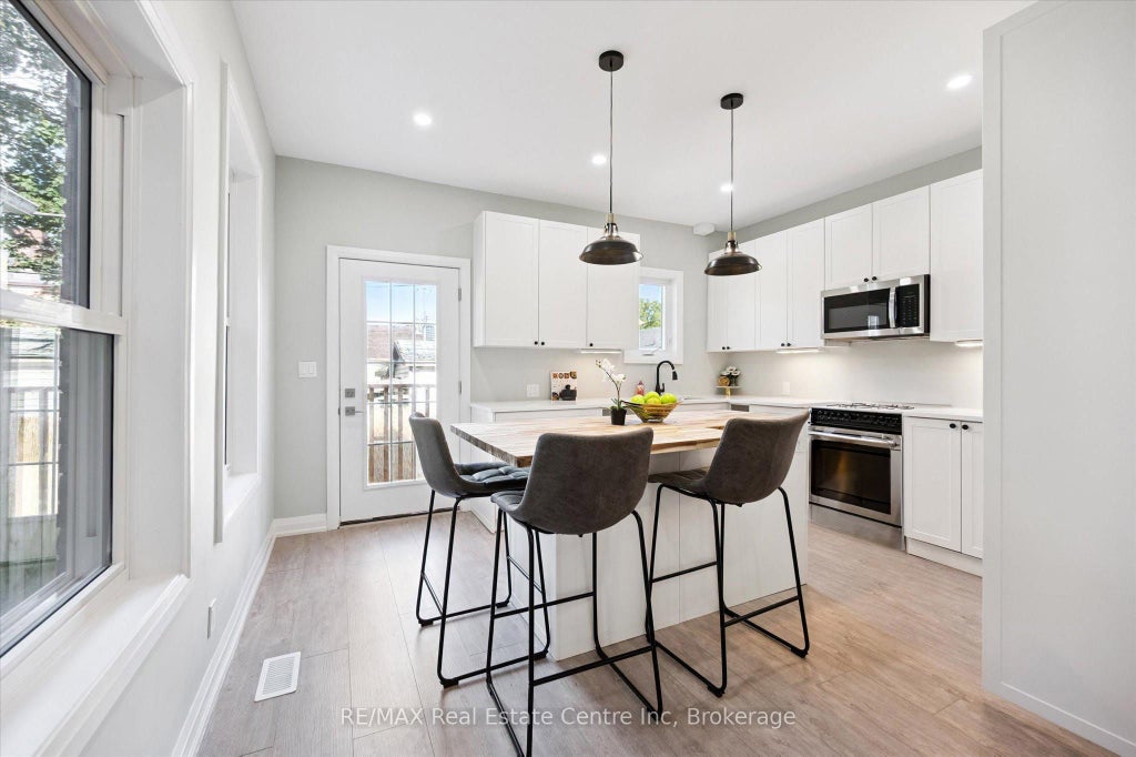 Welcome to your dream home at 68 Spruce St, nestled in heart of historic Galt & short stroll from scenic Grand River! This completely gutted (with only the original exterior brick remaining) & fully renovated gem offers best of both worlds-timeless charm & modern comfort W/brand-new plumbing, electrical, high-efficiency windows & HVAC systems for peace of mind for yrs to come. Step into open-concept living & dining area bathed in natural light from arched picture window. Scratch-resistant vinyl plank flooring ties the space together while 30 stylish pot lighting throughout enhances every room & creates bright atmosphere-perfect for relaxing W/family or hosting friends. Kitchen W/white cabinetry, quartz counters & centre island W/warm butcher block complete W/pendant lighting & overhang seating for casual dining. Step out directly to backyard from kitchen creating ideal indoor-outdoor flow. Elegant oak staircase leads upstairs to 3 bdrms including generous primary suite W/dual windows. Upper-level 4pc bath W/porcelain tile floors, sleek vanity & tiled tub/shower. Downstairs the partially finished bsmt expands living W/finished 3pc bath, heated marble floors & laundry room. Bright rec room is fully drywalled & painted-left without flooring so new owners can customize it to suit their needs. Wet bar R/I for kitchenette is in place. This level is ideal for future in-law suite or mtg helper setup. Located in sought-after Galt neighbourhood enjoy the convenience of being steps to Soper Park with trails, splash pad & disc golf. Walking distance to downtown shops, dining, cafés & Farmers' Market. This is more than a home-it's a lifestyle! Move in & enjoy new everything in one of Cambridge's most charming & connected communities. Limited-Time Offer! Secure your new home with 1-yr lease & enjoy exclusive incentive: 1 mth free rent during the final 6 mths of your lease term! Perfect opportunity to settle into comfortable well-maintained space while saving on your living costs.