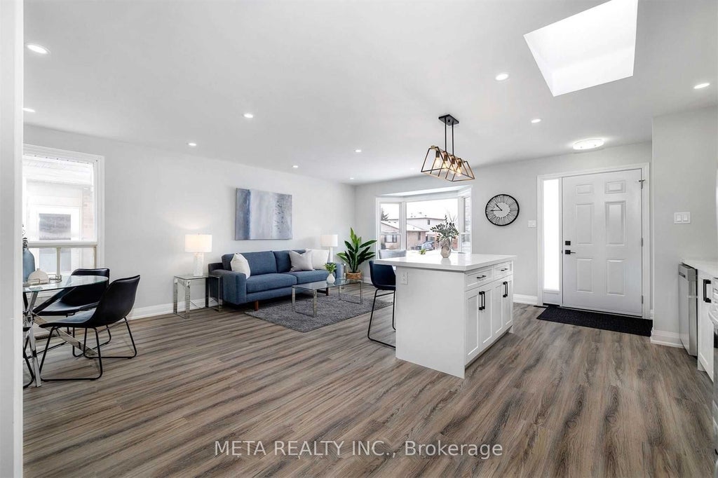 ** 3+2 Bedrooms ** 2 Full Bathrooms ** Fully Upgraded White Kitchen With Island, Skylight & Stainless Steel Appliances** Welcome To This Beautiful Fully Renovated (2022) Detached Home. Very Spacious 4 Level Backsplit With Large Size Bedrooms & Over 2,300 Finished Sq ft Of Living Space. Main Floor Open Concept Modern Kitchen With Skylight, Quartz Countertop, Island, Pot Lights, Vinyl Flooring Throughout. Huge Family Room With Lookout Basement. Great Family Home, Suitable For Large Families, Multi-Generational Living, Close To Amenities, Minutes To 401, Grocery, Mall, Transit & More ! Pictures From When The Home Was Staged. It Is Not Staged Now.